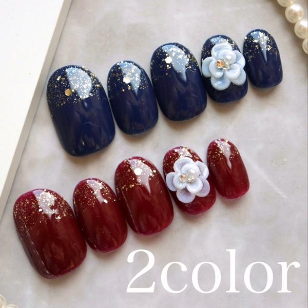 ネイルチップ 成人式ボルドー金グラデ3dフラワー ショートからレギュラーオーバルまで長さが選べるデザインつけ爪 G133 Dinaネイル 通販 Yahoo ショッピング